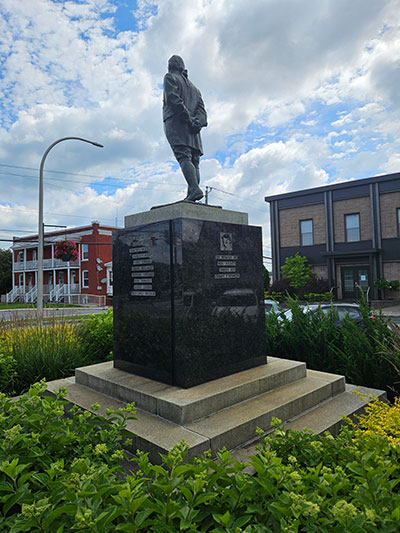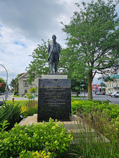 Bronze financé par le comité des fêtes du bicentenaire de la Ville de Saint-Hyacinthe érigé à la mémoire du fondateur de la Seigneurie de Maska.